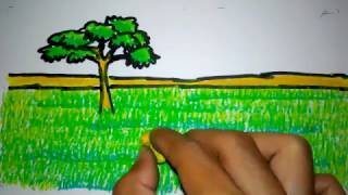 cara menggambar padang rumput